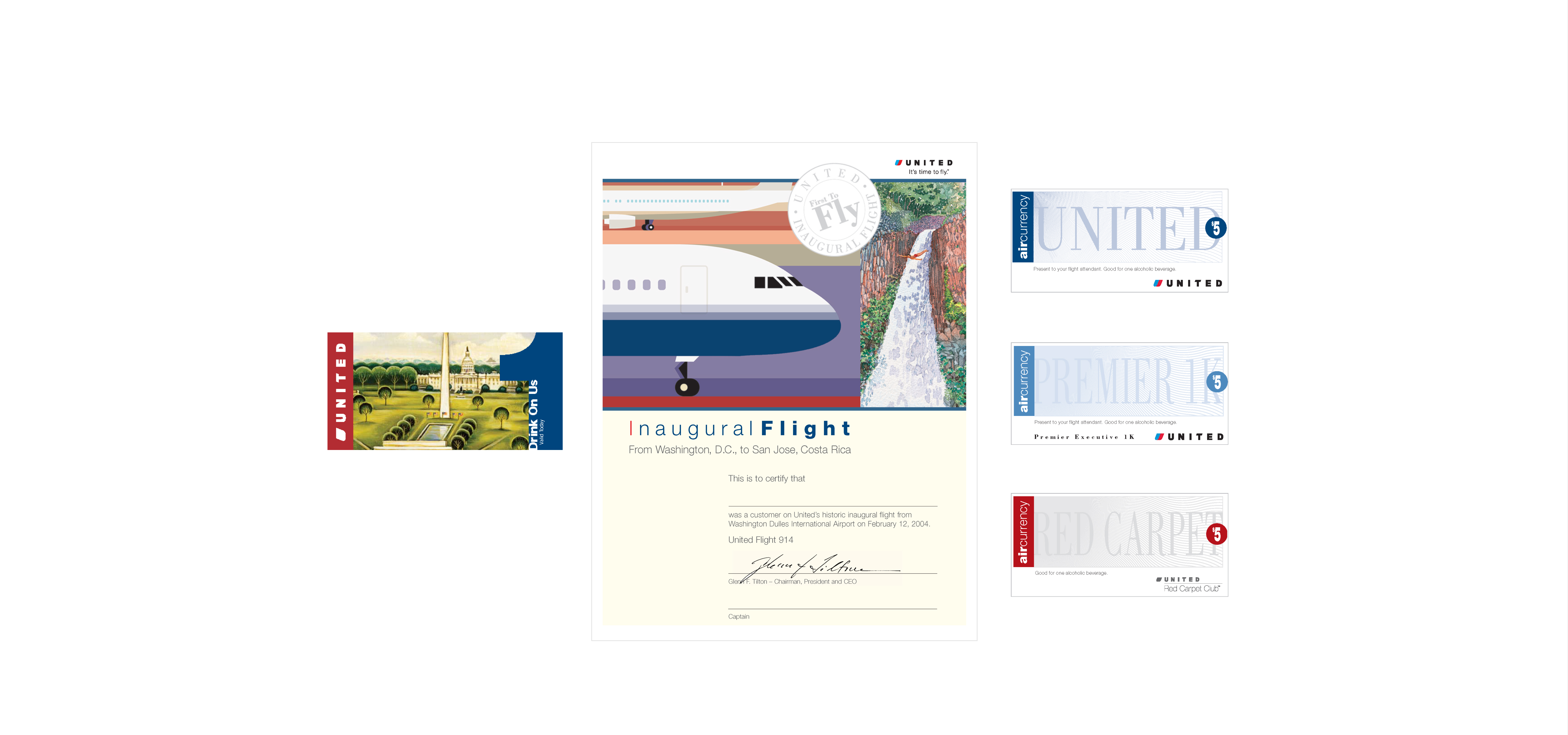 onboard brochure, certificate, drink chit